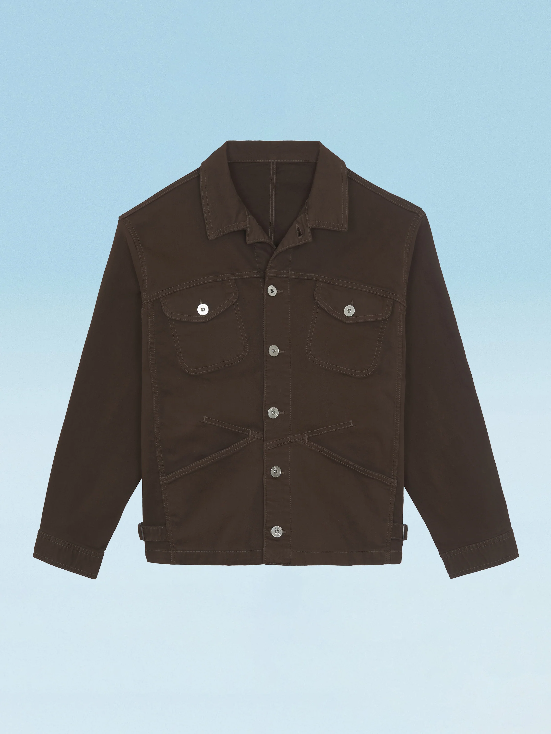 La veste de travail Maskix en denim se distingue par ses 2 poches plaquées sur la poitrine, ses 2 poches sculptées « Dungarees » avec un design X Construction, et ses pattes de serrage ajustables au bas. Les boutons en métal sont gravés du monogramme MFG. La Nouvelle étiquette Tear-off Label sur la manche gauche, qui peut être visible, cachée ou même découpée, est devenue le point central de la nouvelle gamme Internwear de la marque : WEAR IT IN, WEAR IT OUT, or TEAR IT OFF.